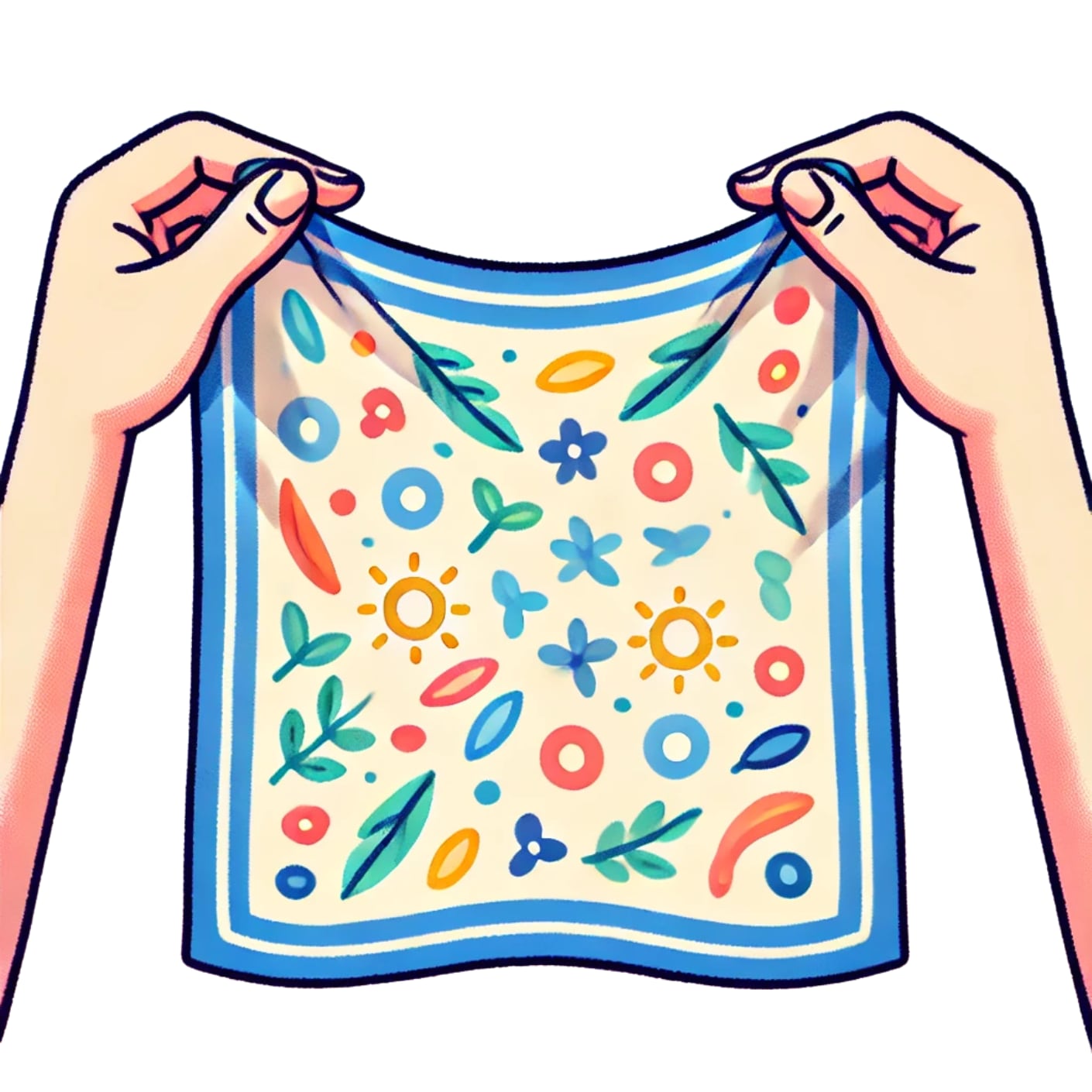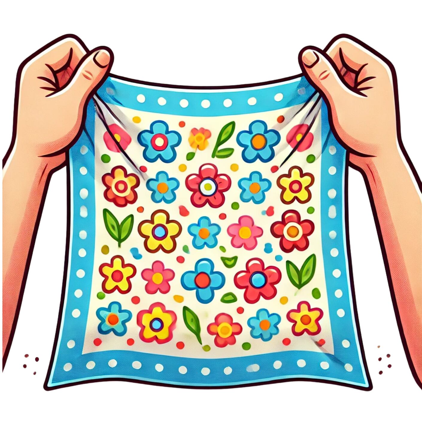 オノマトペに合わせながらハンカチを動かして遊ぶ絵本になります。